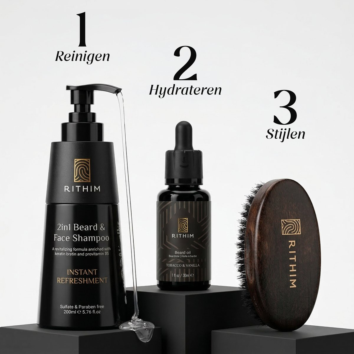 De Rithim Baardverzorging Starter Pack Tobacco & Vanilla Edition is op dit moment de best beoordeelde complete baardset op bol.com. De set bevat alles voor een complete baardverzorgingsroutine in de warme Tobacco & Vanilla collectie - een van de meest geliefde geurprofielen in de baardverzorging.